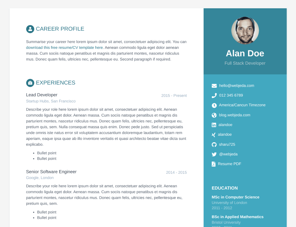 A one-of-a-kind resume builder that keeps your privacy in mind. Completely secure, customizable, portable, open-source and free forever. Try it out today!