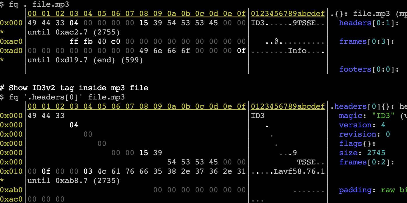 jq for binary formats - tool, language and decoders for working with binary and text formats